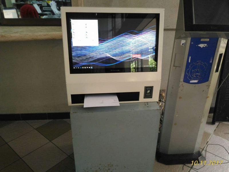 e-Kiosk yang terdiri dari PC All-in-One, UPS, Printer, dan dilengkapi dengan RFID Reader