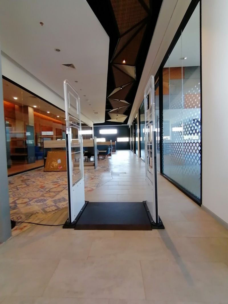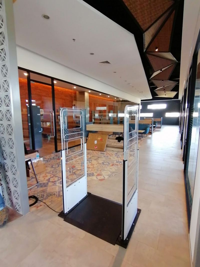 Gerbang pengaman dengan teknologi RFID (HF) untuk melengkapi sistem RFID perpustakaan.