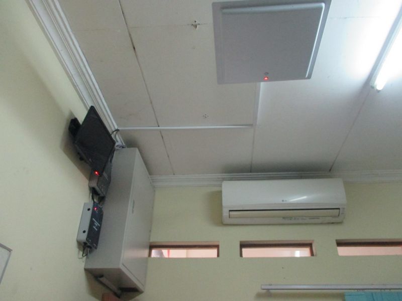 Karyawan menggunakan tag kartu UHF yang dijepitkan di saku.