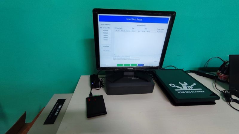 Sistem gudang sparepart meliputi masuk dan keluar barang menggunakan teknologi RFID (UHF). Menggunakan handheld reader untuk proses putaway, searching, dan stock opname. Dilengkapi dengan Smart Trolley dan Smart Desk untuk jalur keluar barang.