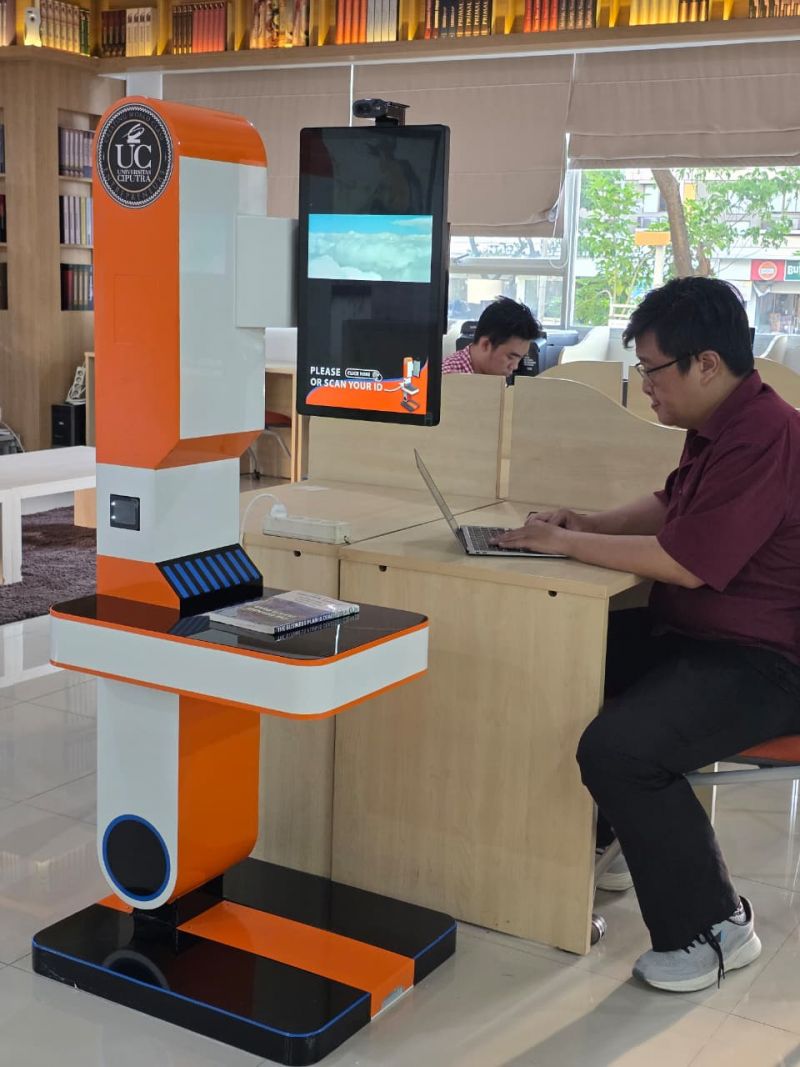 Sistem Peminjaman Mandiri (self-loan kiosk) menggunakan teknologi RFID (UHF) agar anggota bisa meminjam buku secara mandiri.